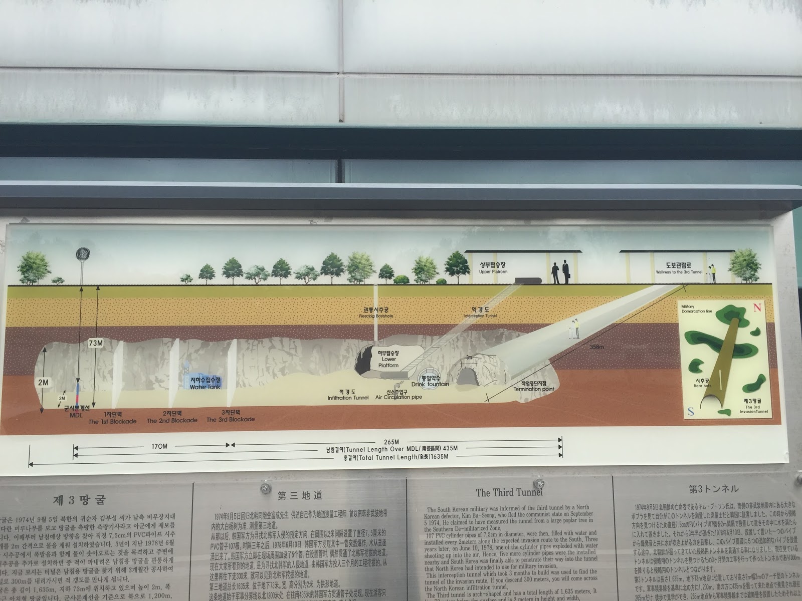 The DMZ is a remnant of the Korean War, basically the line where the opposing forces stood when the armistice was signed in 1953. It is apparently the most heavily militarized area in the world (kind of an ironic name). Foreigners like me can book trips to the DMZ (which I did obviously). Ordinary Koreans usually can't, except through school trips and such.